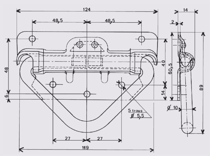 Anneau d'élingage triangulaire sur platine avec ressort de friction permettant le maitien en position - Charge maximum 70Kg