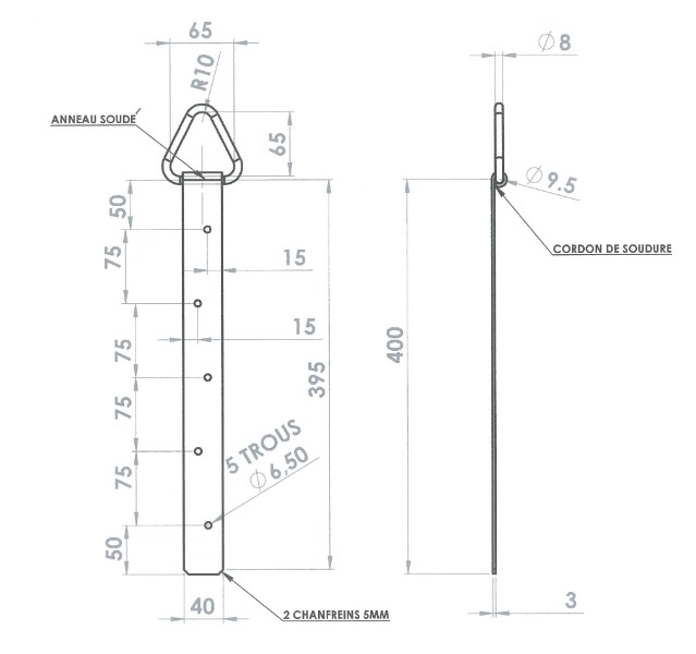 / Anneau d'élinguage+ferrure 400x40x3 -Anneau 8